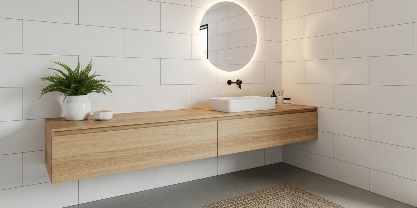 Sleek vanities, mirrored storage and shaving cabinets tailored to your plumbing layout and tile selections. We balance style and practicality, making sure there’s space for everyday essentials as well as extra towels and toiletries. Choose from wall-hung or floor-mounted designs with your choice of tops, basins and handles. All cabinetry is built to handle humidity and daily use, so your bathroom stays looking sharp for years.